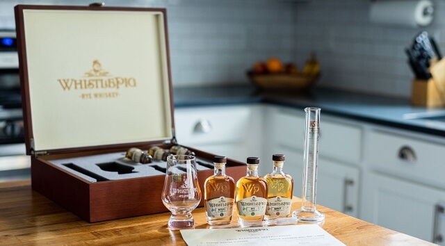 這是 Whistle Pig 和烈酒訂閱制網站 Flaviar 共同推出的活動。首先 Flaviar 的會員會先得到一組「自己調組合包」,裡面包含了口哨豬的裸麥、小麥和大麥威士忌,以及整套的調和工具組—有格蘭凱恩杯、滴管、量筒,並且用一個木箱裝著(看起來超專業)。