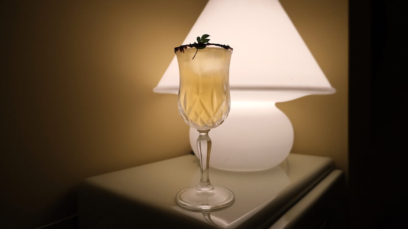 非常濃厚的哈密瓜、香瓜類風味,根本是哈味化身,是屬於比較青綠一點的哈密瓜感。杯口做了巧克力杯的garnish裝飾,但甜度不高、酒感較輕,是喝起來蠻清爽的調酒,平衡感良好這點很讓人欣賞。