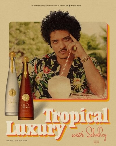 先來稍微介紹一下這個蘭姆酒品牌,Selvarey Rum 是來自巴拿馬的蘭姆酒,而「火星人布魯諾 Bruno Mars」正是這個品牌的合夥人之一,同時也是 Selvarey 的創意總監。