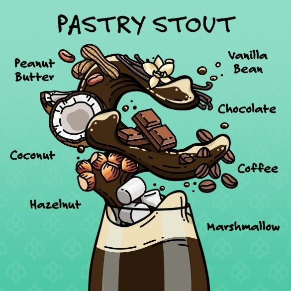 Stout是一種深色啤酒,濃厚、帶有烘烤麥芽、咖啡、巧克力風味,而且口感順滑,酒體飽滿。這樣的酒體能夠放入各種不同的原料,形成各種風味的衍生型態。