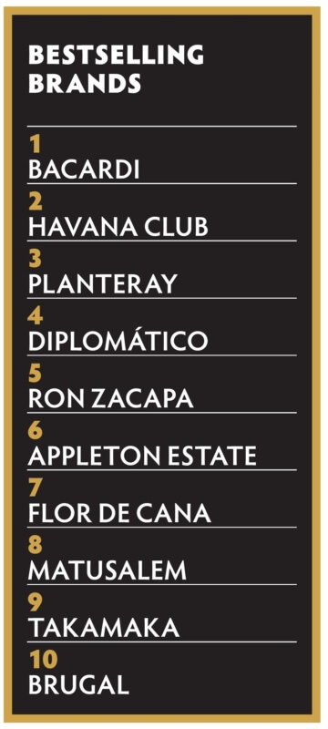 品牌在酒吧心中的影響力依然巨大,老牌的Bacardi、Havana Club 與 Planteray 持續在前三名位置,而且在受訪酒吧中,合計超過66%拿來作為「吧台常備酒(house pour)」。雖然前三名的順序與2025年一樣,但是三個品牌間的數字差距正在縮小中,明年是否會發生名次變化將是觀察重點。